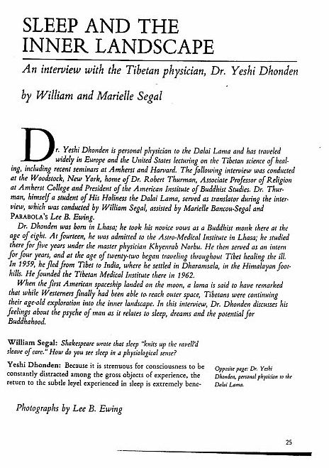 An Interview with Dr. Yeshe Dhonden (circa 1985) on