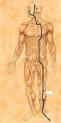 We find the answer in the idea of meridians, which is the basis of the theory of acupuncture and moxibustion. According to this idea, St 36 is located on the network called the Stomach Meridian, and stimulation on St 36 not only stimulates the point but also the entire meridian and stomach organ. According to this classic medical theory, the organ and meridian of the stomach are a part of the foundation of our life energy. Thus, stimulation on St 36 not only affects the leg where St 36 is located, but also affects the health of the whole body.